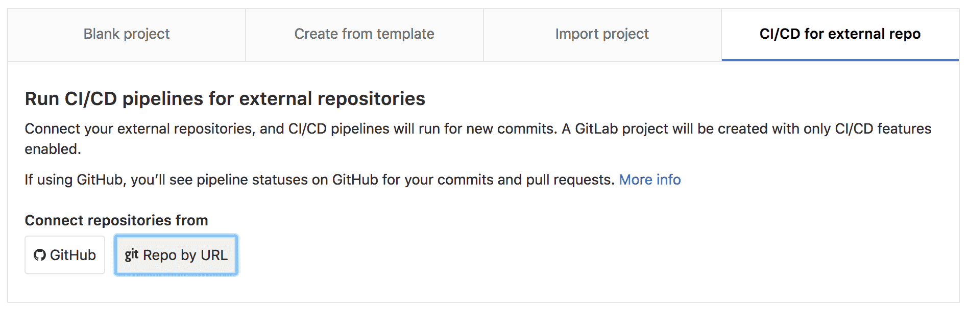 1. In GitLab create a CI/CD for external repo, select Repo by URL and create the project.