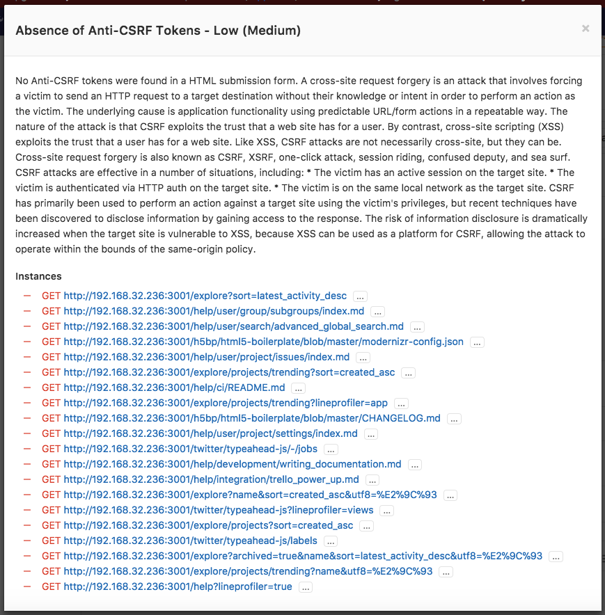 The dast job will perform an analysis on the running web application, the resulting JSON file will be uploaded as an artifact, and GitLab will then check this file and show the information inside the merge request.